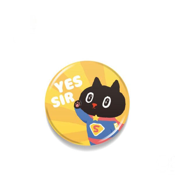 クロロ 22mm缶バッジ イエッサー キャラクター kuroro 猫 黒猫 ねこ 宇宙 台湾 アクセサリー